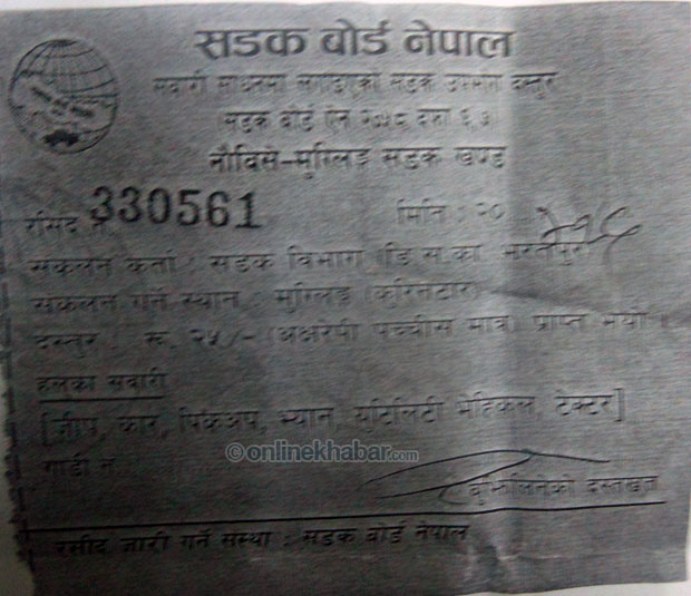 नेपाल यातायात स्वतन्त्र मजदुर संगठनले प्रस्तुत गरेको २७ सुत्रीय मागपत्रका सम्बन्धमा मन्त्रालयले आयोजना गरेको छलफलमा यातायात मजदुरहरुबाट सडकमा विभिन्न बहानामा रकम असुल गर्ने गरेको तथ्य प्रस्तुत गर्दा मन्त्रालयका सचिव तुलसीप्रसाद सिटौलाले यसबारे अनभिज्ञता जनाउनुभएको हो । यातायात मजदुरहरुले सचिव सिटौलालाई अर्धकट्टी देखाएर नै देखाएर ‘सडक मर्मतका लागि भन्दै उठाइएको यो पैसा कहाँ जान्छ सचिव ज्यु’ भनेर सोधेका थिए ।’सडक बोर्ड नेपालले सवारी साधनमा लगाइएको सडक उपभोग दस्तुर’ भन्दै प्रत्येक सवारीबाट रकम असुल्ने गरेको छ । त्यस्तै सडक विभाग डिभिजन सरकारी कार्यालय भरतपुरले राजधानी प्रवेश गर्ने सवारीबाट धादिंङको माझिमटार र राजधानीबाट जाने सवारीहरुबाट धार्केमा रकम संकलन केन्द्र राखेर पैसा असुल्दै आइरहेको छ ।